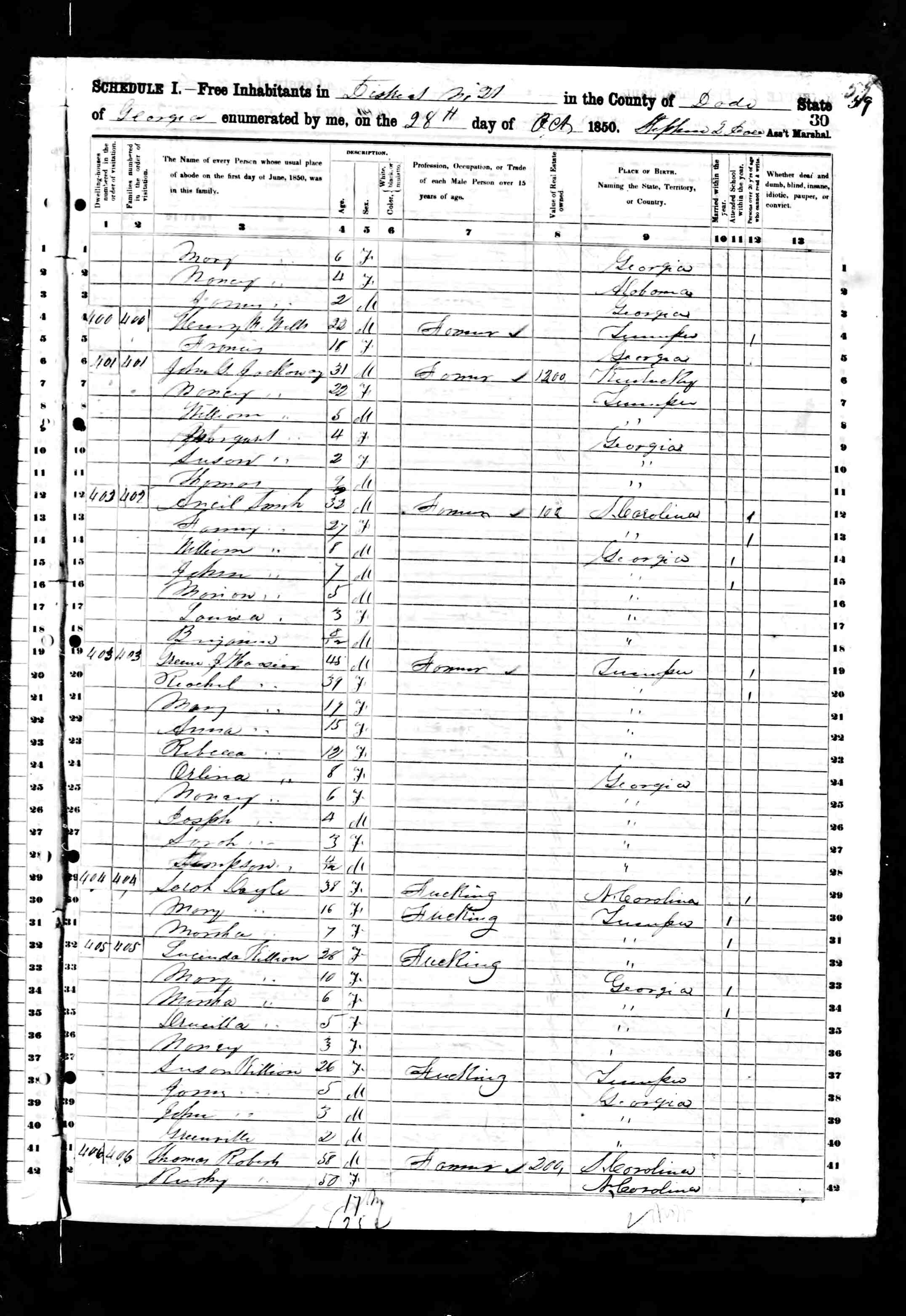 Click here to see some astonishing occupations reported in the 1850 US Federal Decennial Census of Dade County, Georgia, in District 21, page 59.